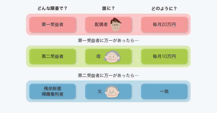 まずは配偶者に保険金を渡したいけど、配偶者がお金を使い切る前に亡くなったら、その次は自分の親にお金を使ってほしい…